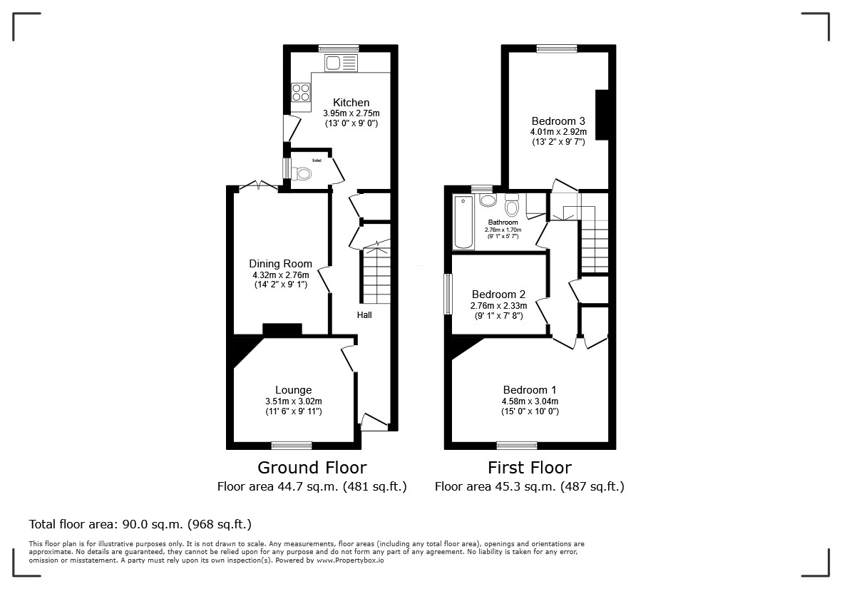 The ground floor offers two spacious reception rooms, useful understairs storage, a downstairs cloakroom, and a modern fitted kitchen. Upstairs, the property comprises three well-proportioned bedrooms and a stylish three-piece bathroom suite.
